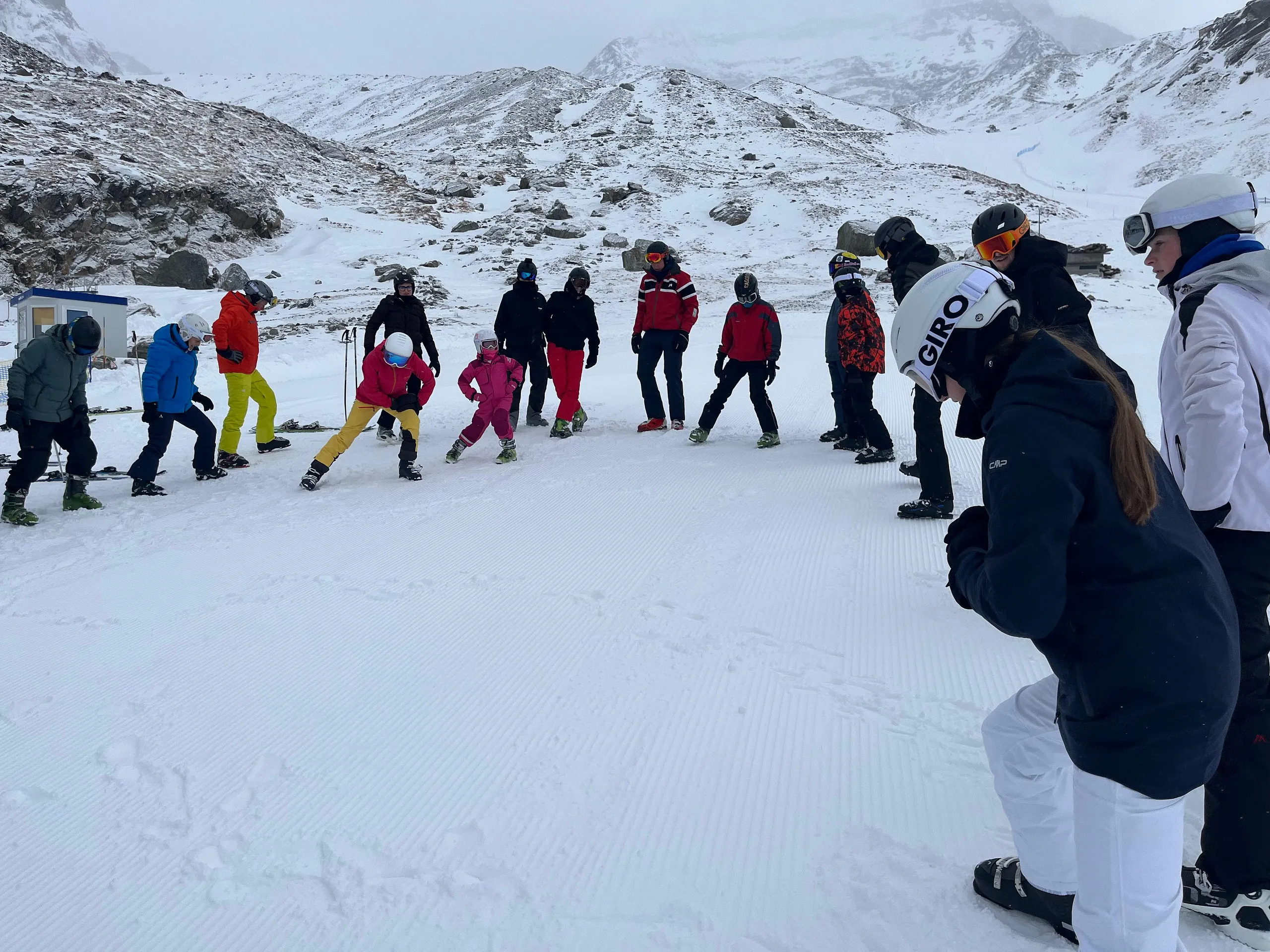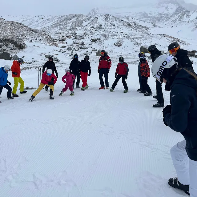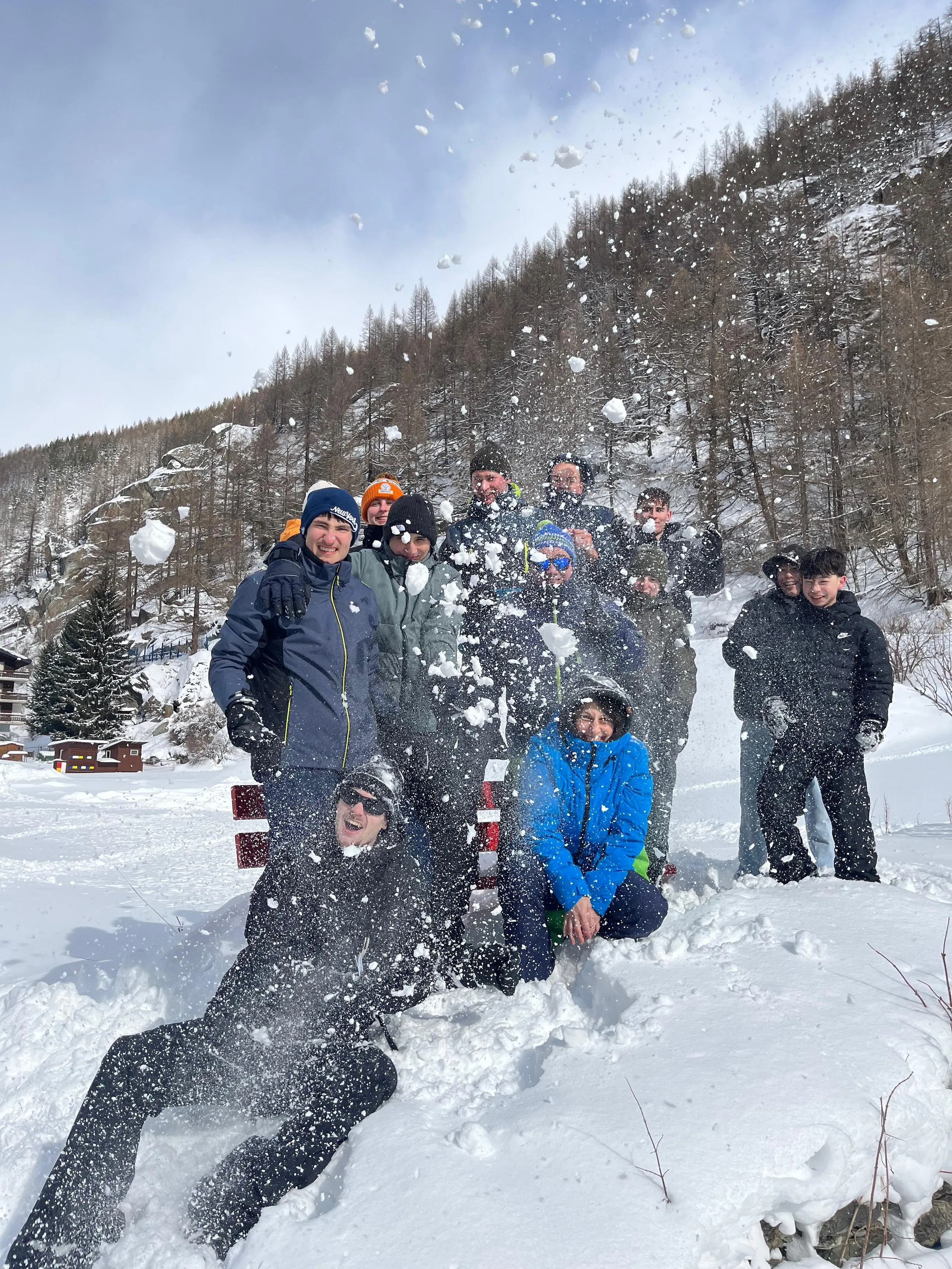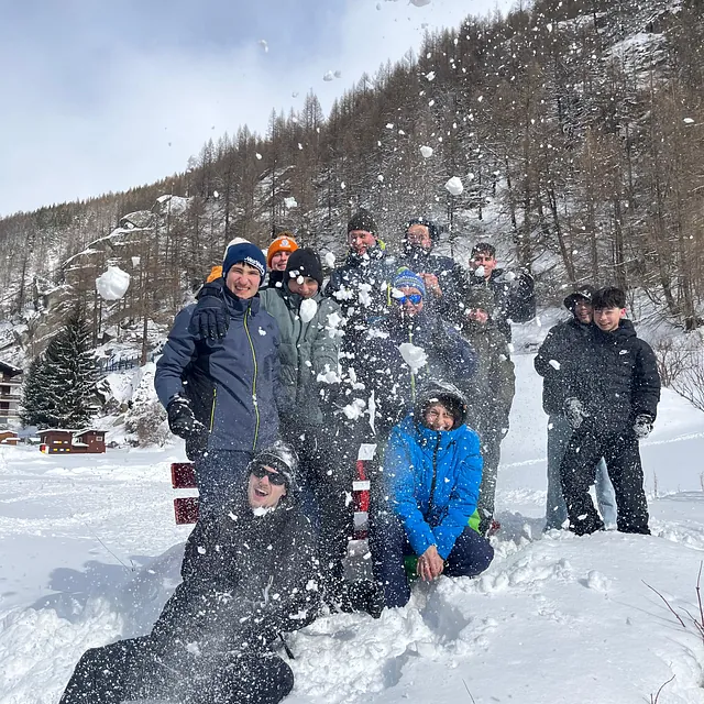 Der erste Skitag zeigte sich von seiner besten Seite: Bei guten Bedingungen wurden die Teilnehmenden in verschiedene Leistungsgruppen eingeteilt, sodass jede und jeder entsprechend des eigenen Könnens gefördert aber auch gefordert werden konnte. Bereits nach kurzer Zeit waren deutliche Fortschritte sichtbar. Täglich startete das Programm mit einem gemeinsamen Aufwärmen, bevor in mehreren Übungseinheiten Technik und Sicherheit auf den Skiern trainiert wurden. Am Ende der Woche konnten selbst Anfänger anspruchsvollere Pisten sicher bewältigen. Auch die Talabfahrt bis fast vor die Haustür sowie die Gletscherpiste auf rund 3200 Metern Höhe zählten zu den besonderen Erlebnissen. Wetterbedingt brachte die Woche jedoch auch Herausforderungen mit sich. Kräftige Schneefälle führten zeitweise zu eingeschränktem Liftbetrieb, und an einem Tag blieb das Skigebiet aufgrund anhaltender Schneemassen sogar geschlossen. Die Gruppe reagierte flexibel: Statt auf der Piste standen Alternativprogramme auf dem Plan. Die Jugendlichen nutzten die Zeit, um den Ort näher kennenzulernen, Gemeinschaft zu pflegen und bei einem Schwimmbadbesuch in Saas-Fee sich im Wasser von den ersten Skitagen zu erholen. Natürlich lud der Neuschnee auch zu lustigen Schneeballschlachten und zum Iglu-Bau ein.