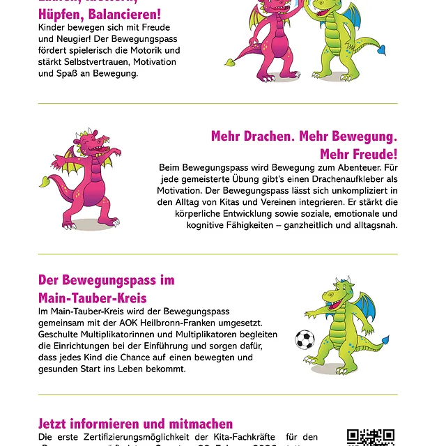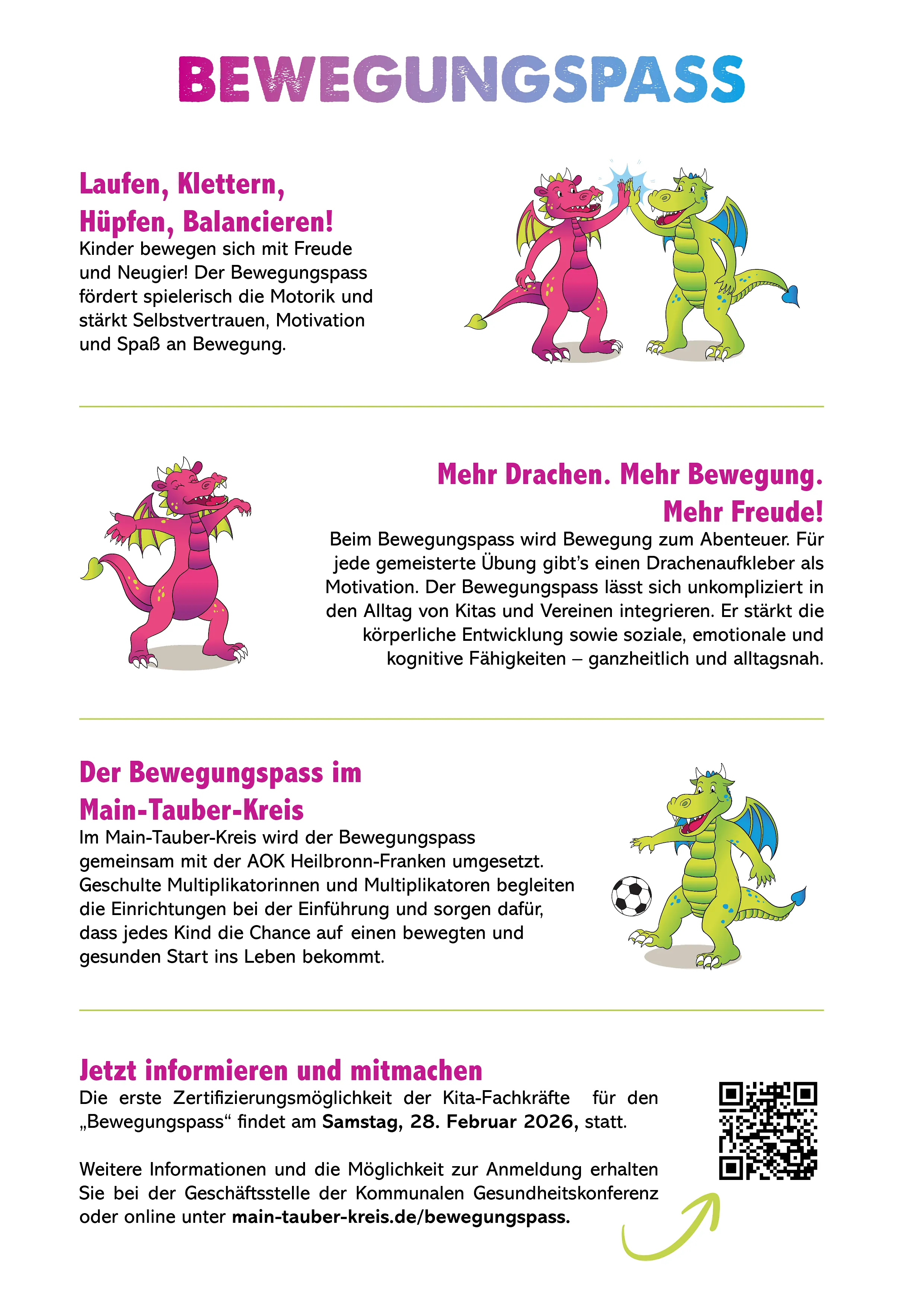 2026 bietet das Gesundheitsamt Main-Tauber-Kreis im Rahmen der Kommunalen Gesundheitskonferenz (KGK) den Kindertageseinrichtungen im Main-Tauber-Kreis den Bewegungspass an.