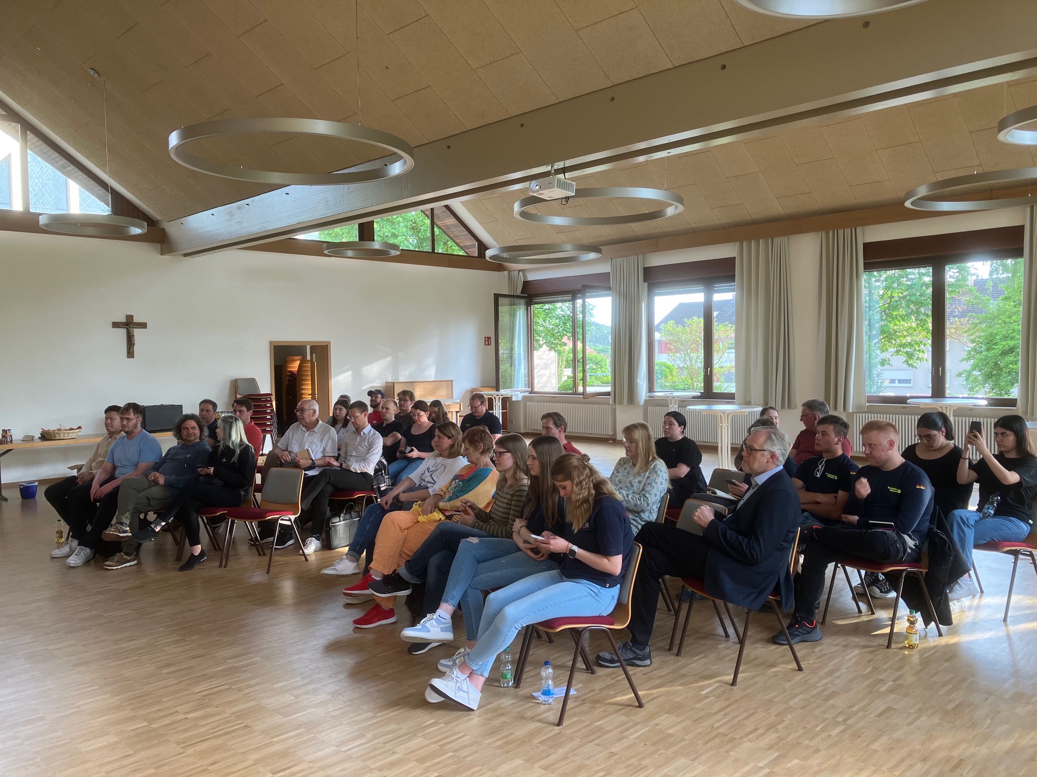 Zu Beginn der Versammlung begrüßte Simon Kurfeß als 1. Vorsitzender die bestbesuchteste MGV seit vielen Jahren. Ein besonderer Gruß galt dem Leiter des Kreisjugendamtes, Martin Frankenstein. Mit 13 anwesenden von insgesamt 16 aktiven Mitgliedsverbänden konnte die Beschlussfähigkeit deutlich festgestellt werden. Insgesamt waren über 40 Delegierte von Sportjugend, konfessioneller Jugend, DLRG, Kreisjugendfeuerwehr, Jugendrotkreuz, THW-Jugend, Blasmusikjugend, Jugendhäuser und weiteren Verbänden dabei. Seit der letzten MGV im Juni 2022 traf sich das Vorstandsteam zehnmal zu Besprechungen und Arbeitstreffen. Dabei standen eine Reihe von Themen auf der Tagesordnung, die auch in der Informationsbroschüre „Lichtblick“ zu finden waren. Erstmals wurde auch ein „Kleiderflohmarkt“ für junge Menschen im Alter von circa 15 bis 35 Jahren durchgeführt. Bei weiteren regionalen Jugendprojekten war man in Kooperation oder unterstützend tätig. Regelmäßig dazu gehört auch das Sommercamp von Nicolai Imhof, das dieser für Kinder aus einkommensschwachen Familien anbot. Wichtig ist auch die Mitarbeit des KJR im Jugendhilfeausschuss oder in den Planungsgruppen der Jugendhilfe. Die gute Zusammenarbeit und der Austausch mit dem Kreisjugendamt wurde hier von Simon Kurfeß besonders hervorgehoben. Sicher trägt dazu auch bei, dass Kreisjugendreferent Dr. Michael Lippert dem Vorstand beratend angehört.