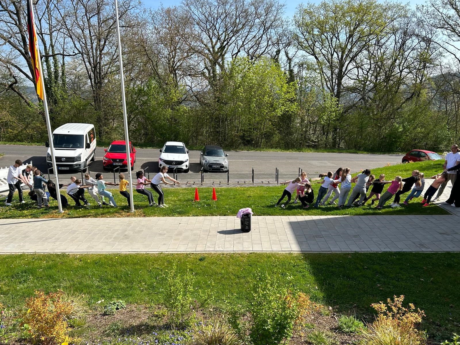 Gemeinsam in der Großgruppe wurde das Gelände spielerisch erkundet, eine tanzende heitere Polonaise und ein großes Menschenmemory veranstaltet. Beim Tauziehen wurden Kräfte gemessen und Erfolge gefeiert. Neben bunten Eiern, gemeinsamen Lachen und jeder Menge Spaß, wurde sogar der Osterhase gesichtet.