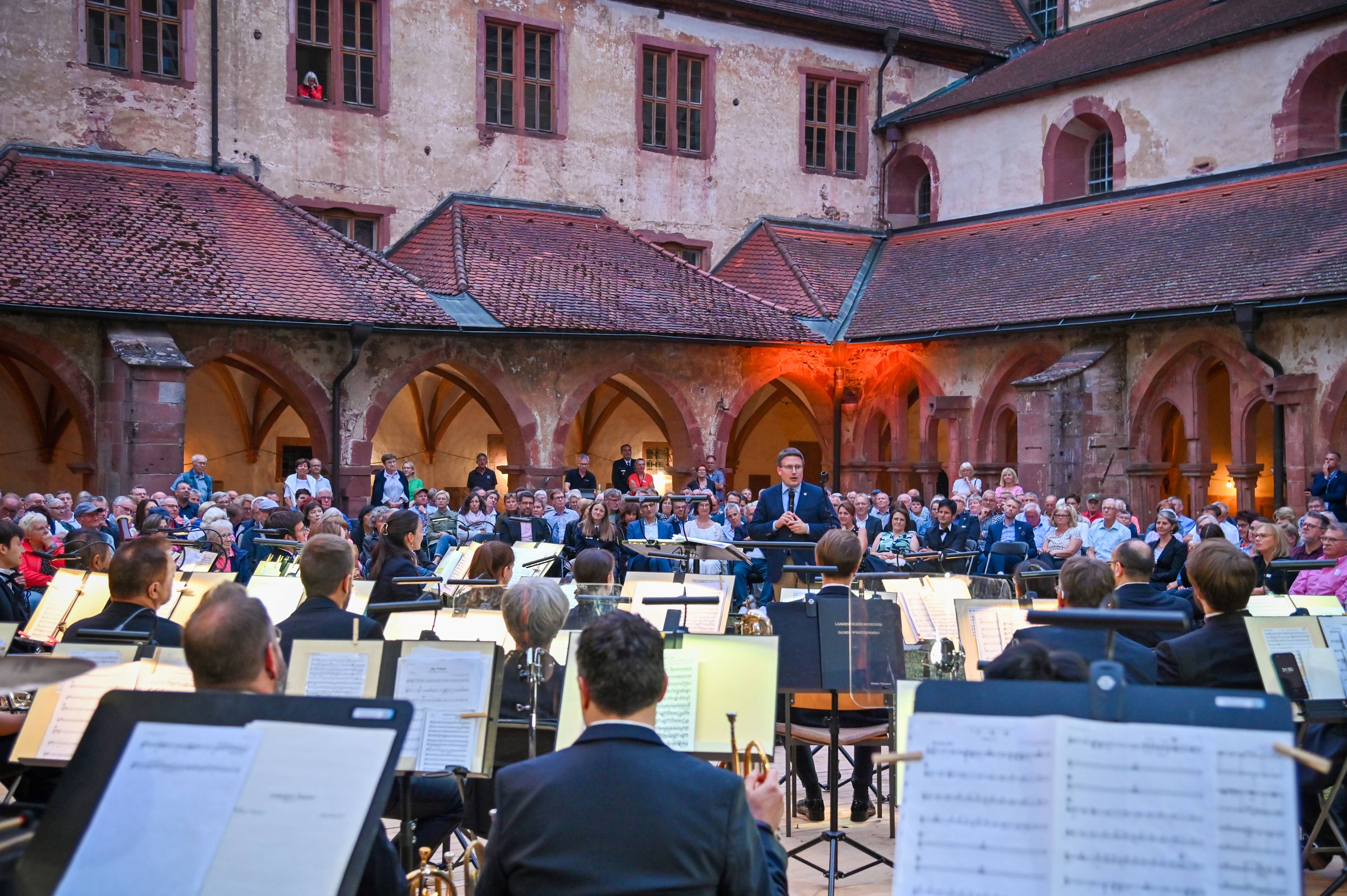 Beste Musik im stimmungsvollen Ambiente des Klosters: Das Landespolizeiorchester Baden-Württemberg begeisterte die zahlreichen Gäste. Foto: Landratsamt Main-Tauber-Kreis, Frank Mittnacht