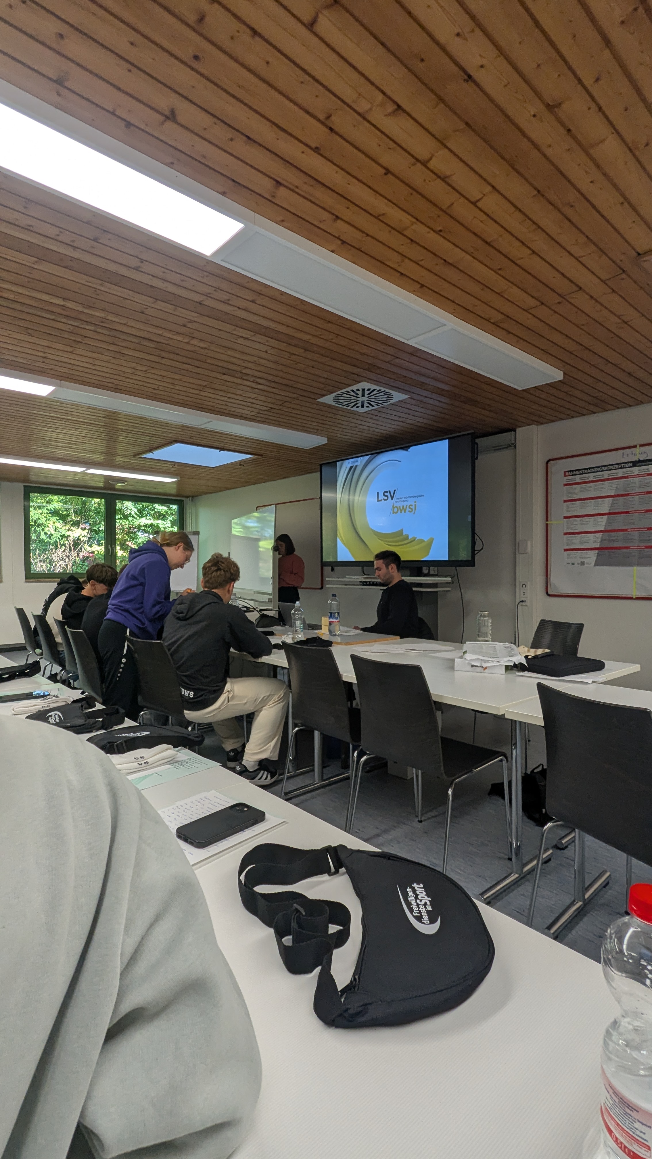 Nach einem kurzen Beschnuppern und kleinen interaktiven Spielen ging es sofort los mit den ersten Themenblöcken „Teamwork“ und „Kompetenzen“. Hierbei lernten wir unter anderem welche Fähigkeiten für ein FSJ benötigt werden sowie als Team zu arbeiten und zu fungieren. Am Tag darauf ging es dann ebenfalls mit einem wichtigen Thema und zwar „Rechte und Pflichten“ weiter, in denen uns rechtliche und gesetzliche Rahmenbedingungen erläutert wurden. Nach einem gemeinsamen Abendessen und einer gemütlichen Runde, in der unter anderem Fußball geschaut wurde, war auch der dieser Tag ganz schnell vorbei. Für solche Aktivitäten bot die Sportschule Steinbach optimale Bedingungen für ein harmonisches Miteinander. Am nächsten Tag ging es überwiegend über Projektmanagement, in der wir in den jeweiligen Gruppen verschiedene Sportveranstaltungen organisieren durften. Auch bekamen wir einen Einblick in das sehr wichtige Thema der „Prävention sexualisierter Gewalt“. Das gemeinsame Sportprogramm war dann der Abschluss unseres 3. Tages. Am vorletzten Tag ging es unmittelbar nach dem Frühstück mit einem Erste-Hilfe-Kurs los, der jedoch auch auf Eigeninitiative beruhte in Form von Plakaten gestalten oder auch in Form von simulierten Verletzungen der Anderen zu versorgen. Das Highlight des Tages fand jedoch am Abend statt, in der wir als gesamte Truppe Bowlen gegangen sind, was die Gemeinschaft und die Teamfähigkeit untereinander nochmals verstärkt hat. Am Freitag stand noch die Seminarauswertung auf dem Plan sowie einen Brief an sich selbst zu verfassen, der uns dann im Laufe des Jahres zugeschickt wird. Das gemeinsame Mittagessen war daraufhin der Abschluss und vollendete eine insgesamt spannende und informationsreiche Woche für uns 3.