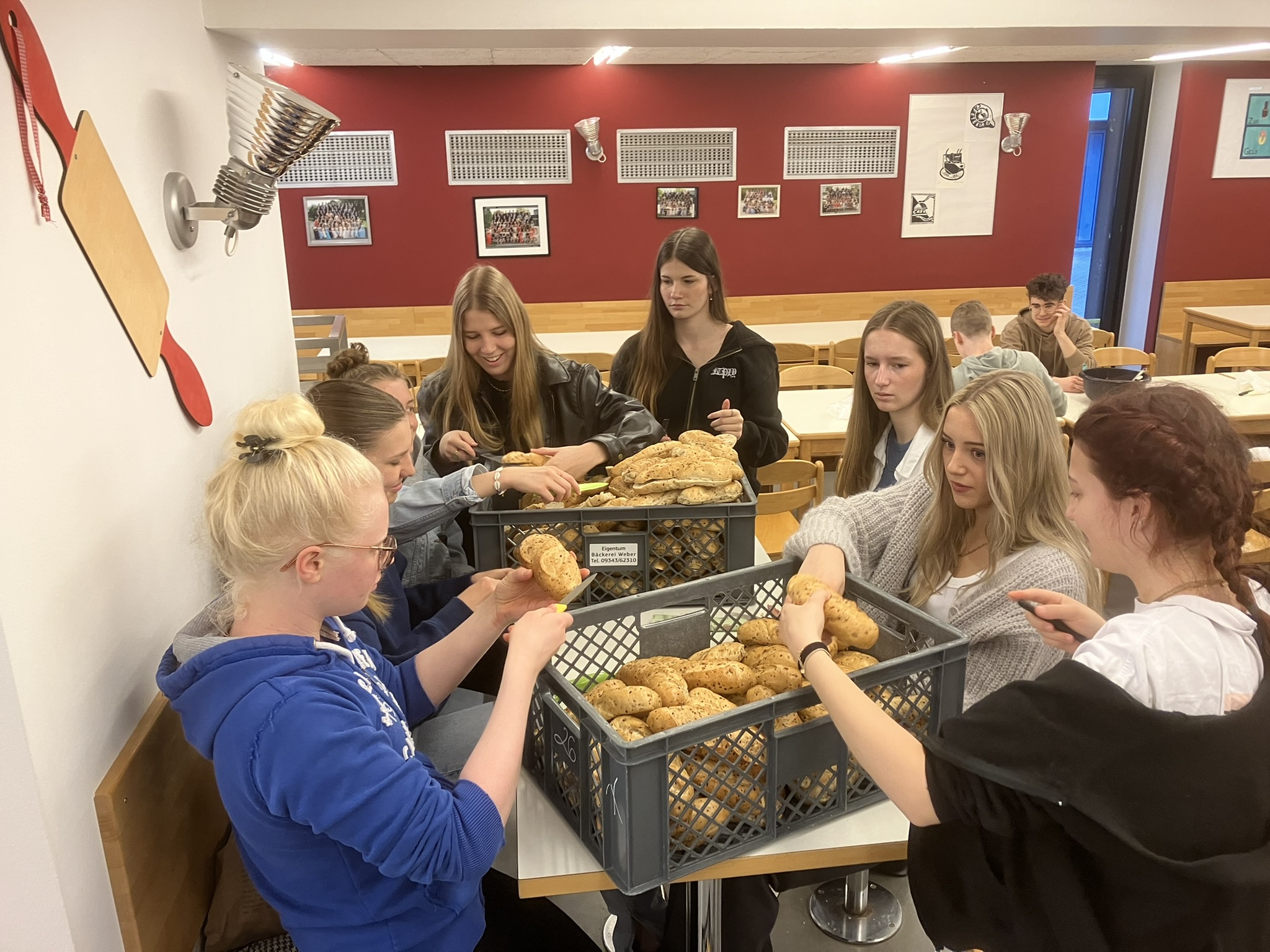 Kurz nach 10 Uhr gab es ein gemeinsames Frühstück, das von Schülerinnen und Schülern der 12. Klasse liebevoll vorbereitet worden war. Das gesunde Frühstück umfasste frisches Obst, knackiges Gemüse, Brötchen sowie eine Auswahl an Käse- und Wurst, die einen gesunden Auftakt für den Tag garantierten.