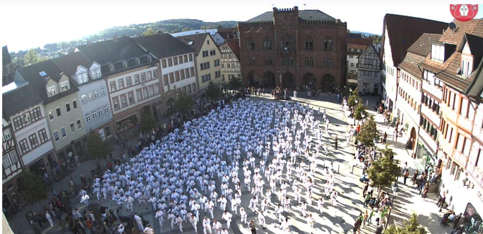 Der Flashmob durfte bei einem solchen Lehrgang in der Karatestadt an der Tauber nicht fehlen. Diesmal waren alle wieder im Gi und verliehen der Stadt eine unvergleichliche Attraktion.