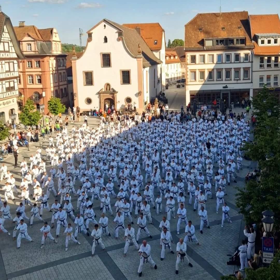Mit dabei mehr als die gleiche Anzahl an Begleitpersonen. So hatte das Team um den Cheftrainer und Hauptorganisator Schlatt knapp 3000 Gäste zu versorgen. 1000 Karateka im Karateanzug Gi: Man sah sie in der Fußgängerzone, im Park, auf dem Marktplatz, in den Biergärten, Bussen und Supermärkten. Lässigkeit pur. Niemand störte sich daran und wenn überhaupt jemand auffiel, dann waren es die Tauberbischofsheimer, die keinen Karateanzug trugen.