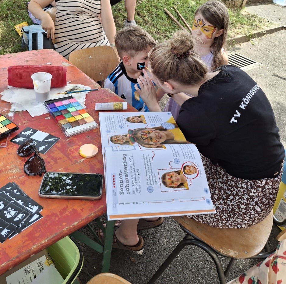 Richtig kreativ ging es beim Schminken zu. Bunte Feen, Löwen, Glitzer-Blumen und Deutschland-Farben wurden auf die kleinen Gesichter gepinselt.