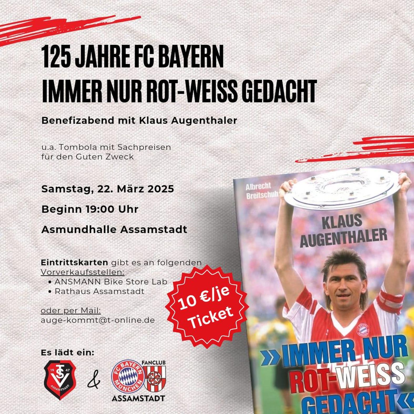 Fußballlegende Klaus Augenthaler kann morgen den 22.03.2025 nicht zum TSV Assamstadt kommen!!!