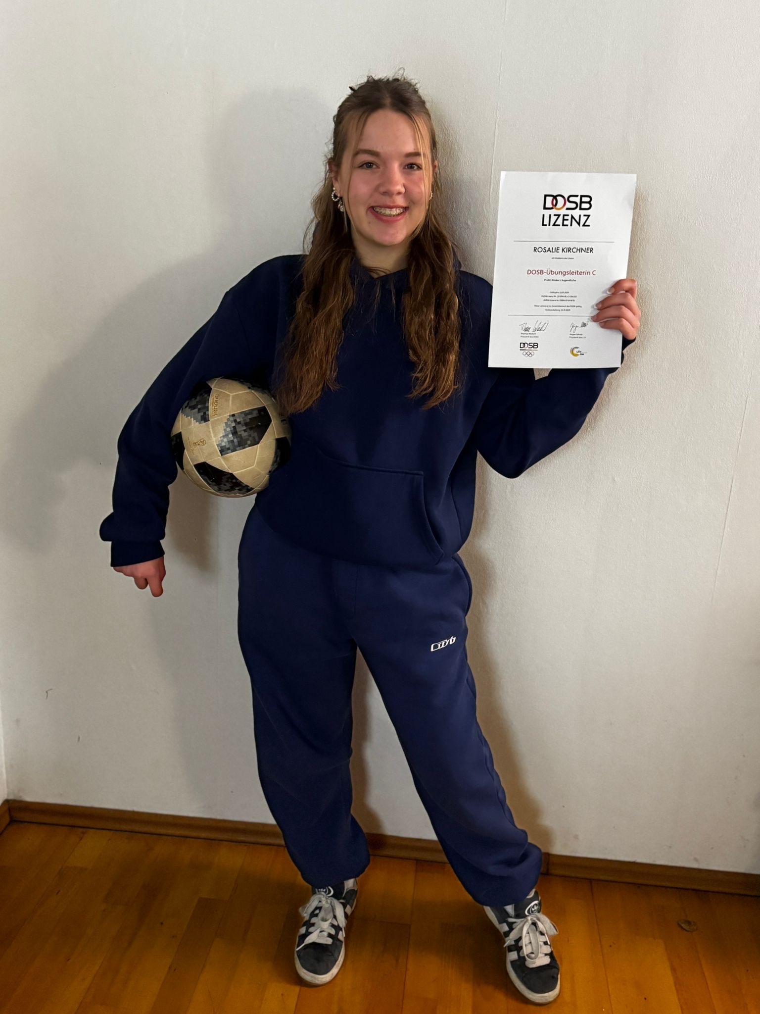 Erfolgreich absolvierte Rosalie beide Prüfungen und erhielt am Ende der Woche als Prüfungsbeste im praktischen Teil ihre Urkunde zur Übungsleiterin C. !