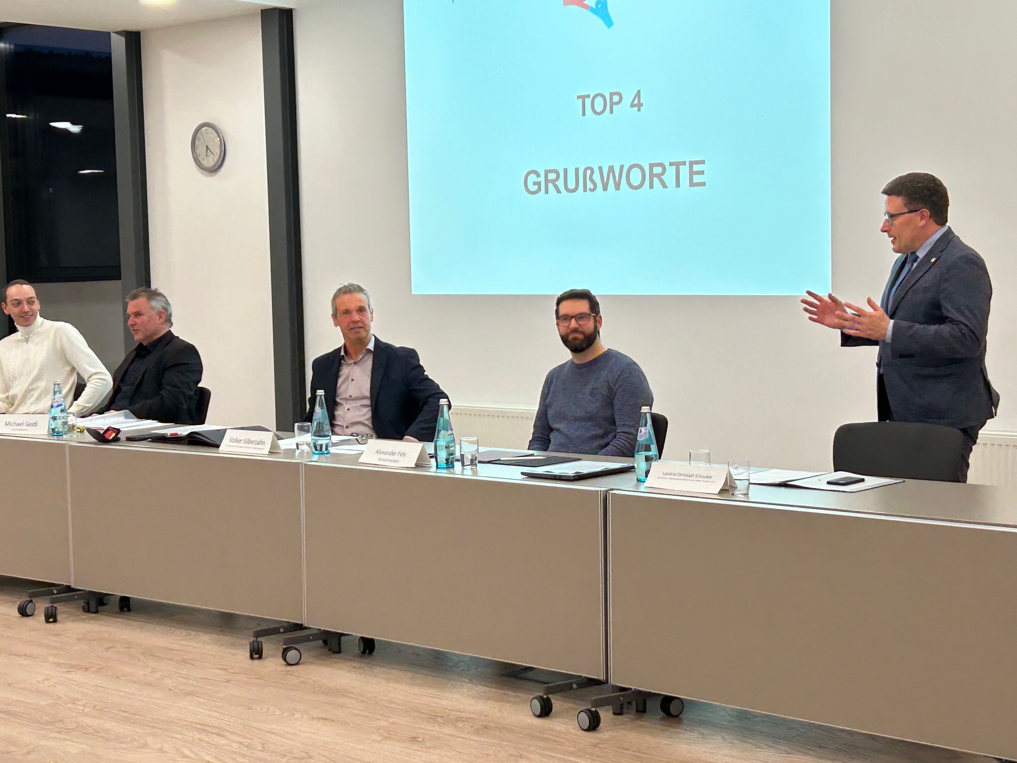 Armin Schaupp, Bürgermeister Ralf Dörr, Dominic Faul, Michael Geidl, Landrat Christoph Schauder, Michael Grethe, Vorsitzender Volker Silberzahn, Georg Köhler, Marion Engert, Volker Stephan, Bürgermeister Joachim, Döffinger, Alexander Fels, Reinhold, Balbach und Eugen Dürr