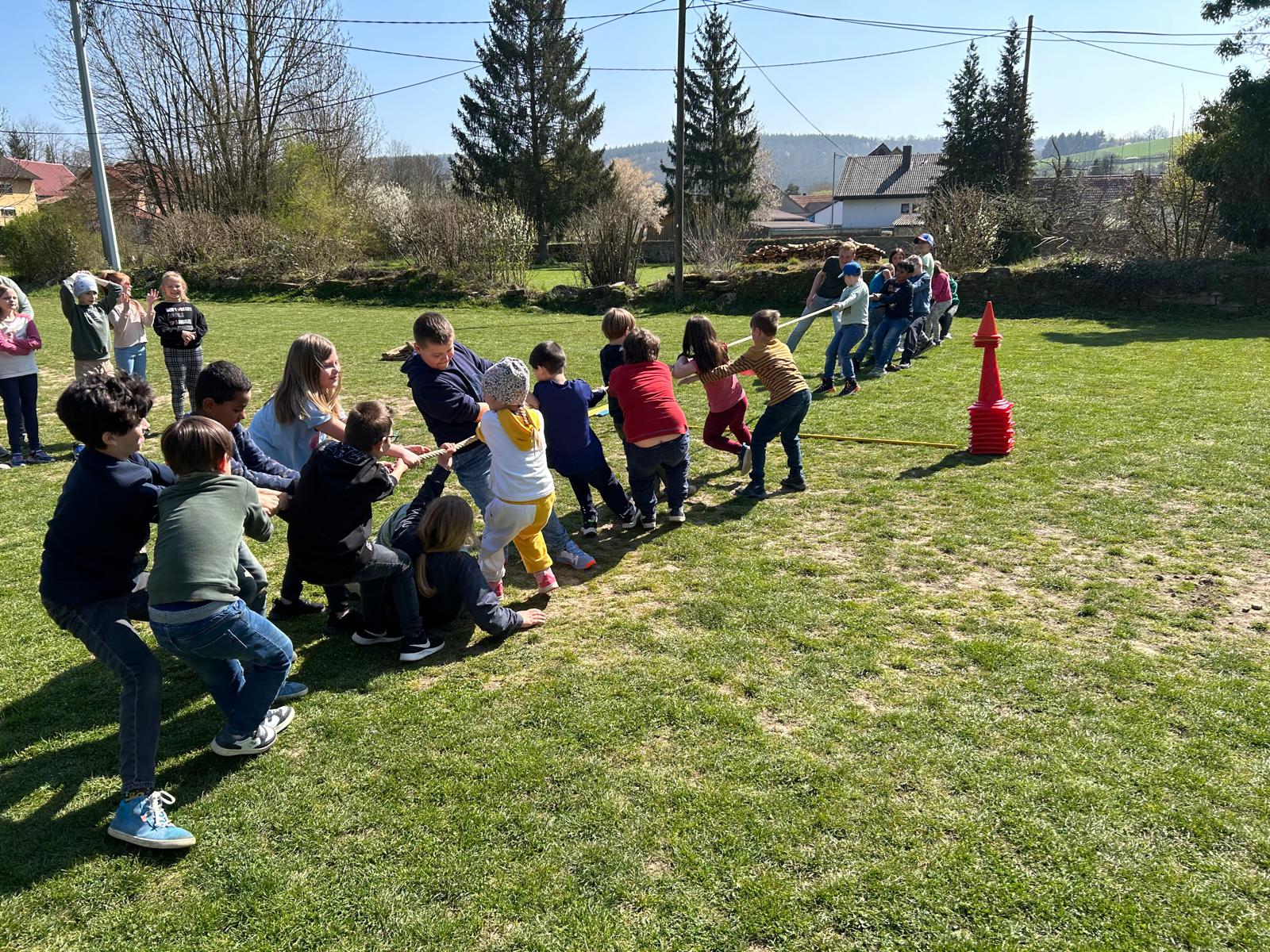 Zum Abschluss wurde ein Tauziehen gemacht, bei dem die Kinder noch einmal all ihre Kraft zeigen konnten. Danach verteilte der Osterhase mithilfe seiner Helfer bunte Eier an alle Kinder, so dass die Veranstaltung eine gelungene Sache war.