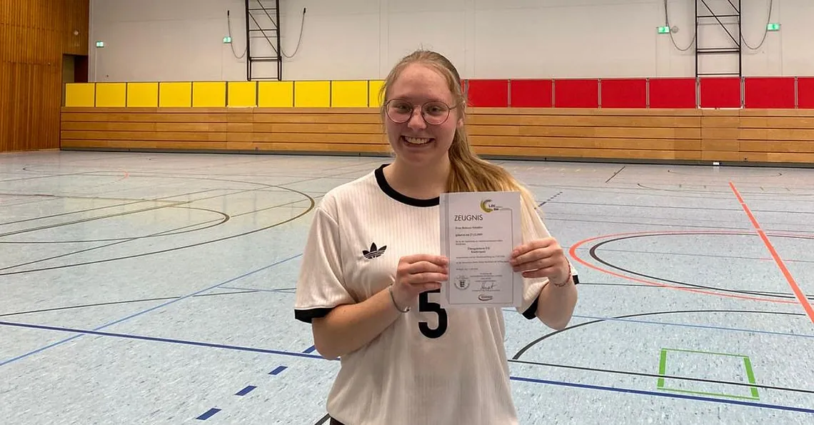 Am Ende der Woche absolvierte Rebecca erfolgreich ihre Prüfungslehrprobe sowie ihre schriftliche Prüfung und hat nun ihre C-Lizenz als Übungsleiterin im Breitensport offiziell in der Tasche. Damit ist sie bestens darauf vorbereitet, Vereins- und Freizeitangebote zu planen, zu organisieren und durchzuführen sowie eigenständig Trainingseinheiten im Anfängerbereich zu leiten.
